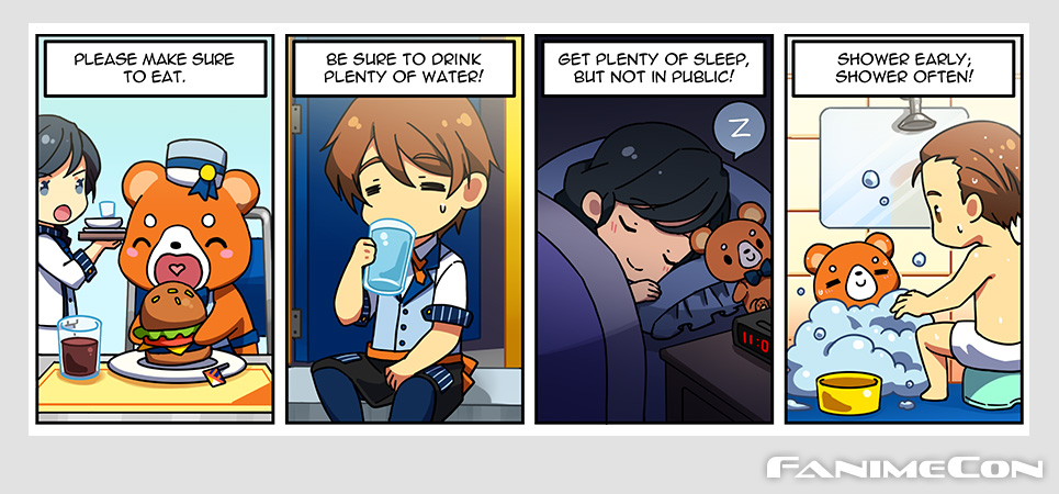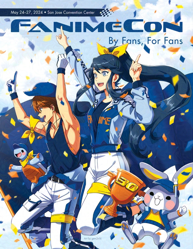 Various of character arts of FanimeCon mascots used throughout the convention for web graphics, banners, printed materials including program guides, and merchandise.